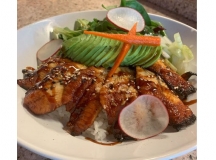 chasu,shredded, sweet black mushroom, fried onion, green onion, black garlic oil